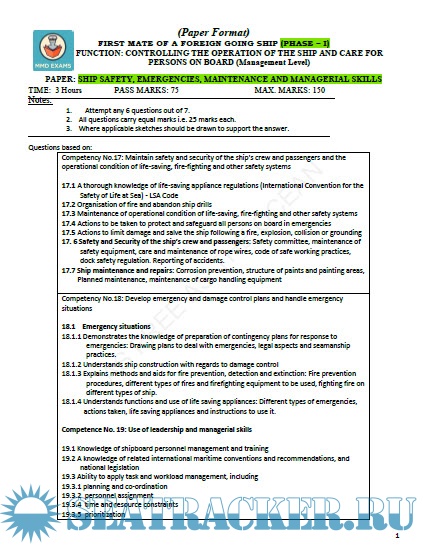 Description: Paper: Ship Safety, Emergencies, Maintenance and Managerial Skills