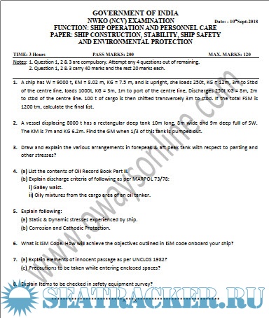 NWKO (NCV) question paper sets for Mercantile Marine Department (MMD), India Exams.