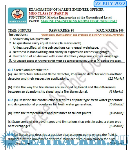 M.E.O. Class IV (Part B) Question Paper for Mercantile Marine Department (MMD), India Exams.