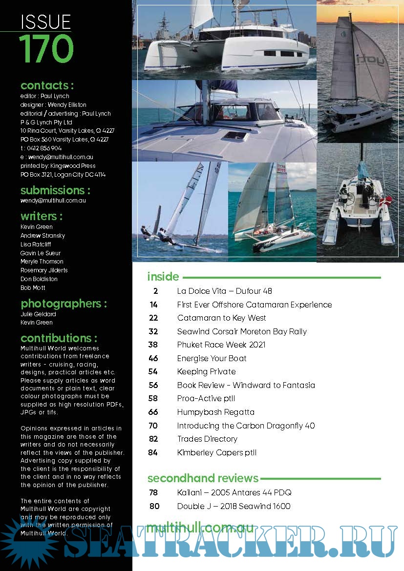 Year: 2022 Language: english Author: Paul Lynch Genre: Periodical (magazine) Edition: January - February 2022 Format: PDF Quality: Photo of pages Pages count: 92 Description: Multihull World is an Australian-based specialist publication devoted to multihull enthusiasts - catamarans and trimarans, offshore, off-the-beach, power, racing and cruising.
