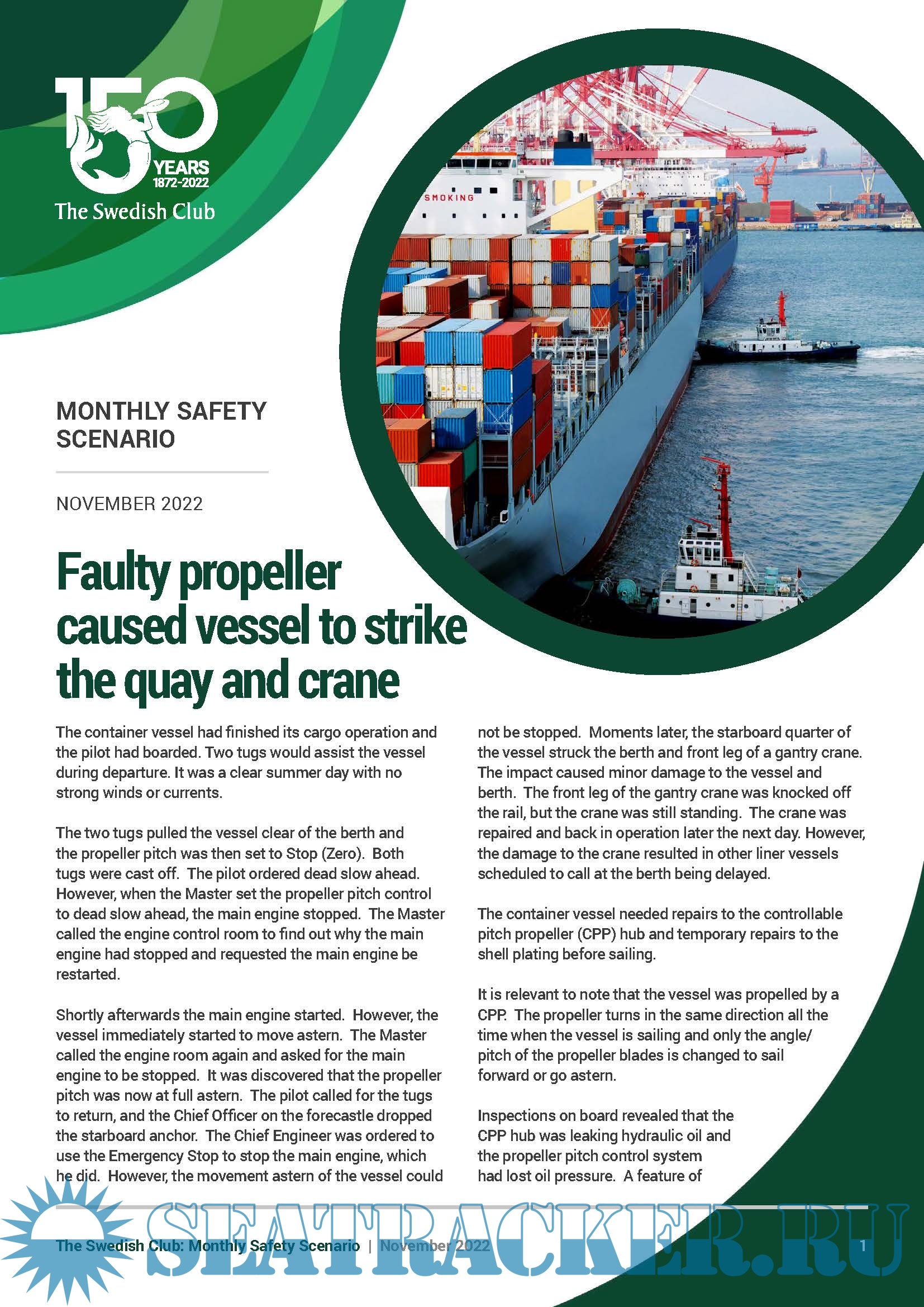 Monthly Safety Scenario (MSS) - Faulty propeller caused vessel to strike the quay and crane, November 2022