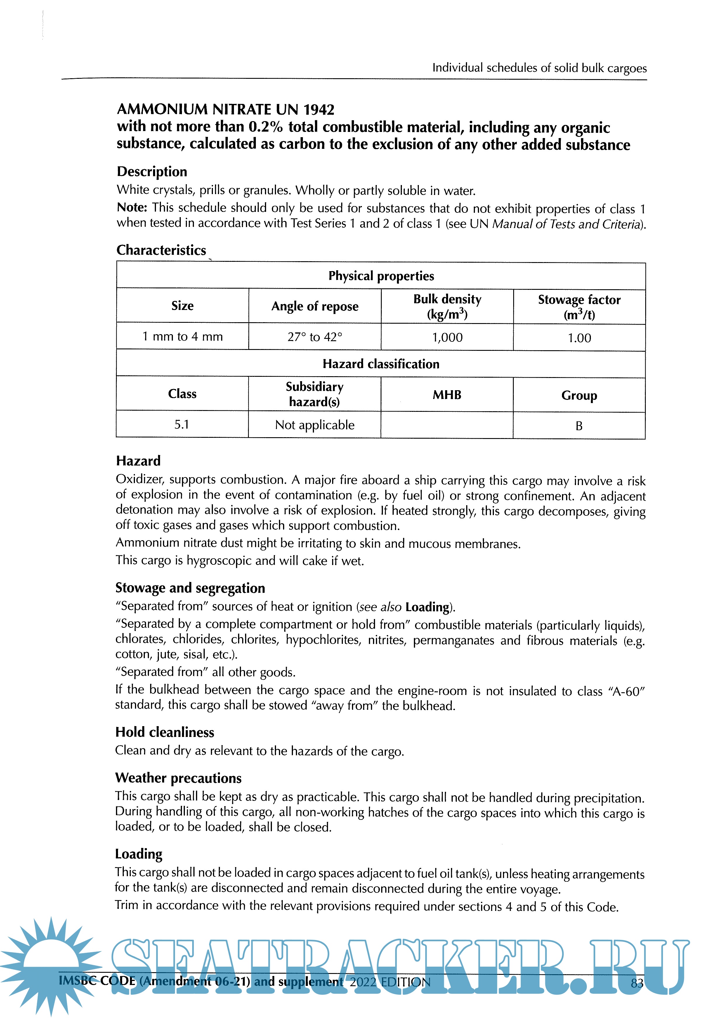 • New individual schedules for such cargoes as ammonium nitrate based fertilizer, ammonium nitrate based fertilizer MHB, clam shell, leach residue containing lead and superphosphate (triple, granular).
