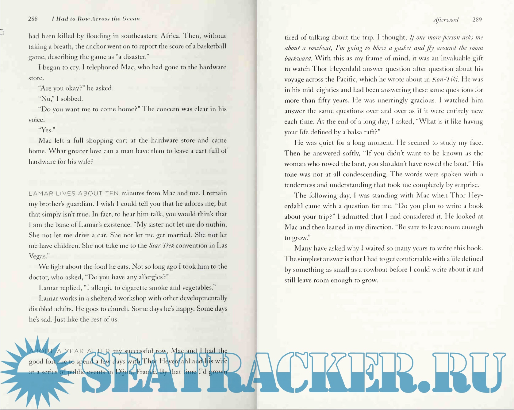 Year: 2009 Language: english Author: Tori Murden McClure Genre: Textbook Publisher: Harper Collins Edition: First ISBN: 978-0-06-171886-1 Format: PDF & EPUB Quality: Scanned pages Pages count: 306 Description: When mapmakers of the distant past came to the end of the known world, they would inscribe "Here There Be Sea Monsters". When Tori Murden McClure attempted to row solo across the Atlantic Ocean in a 23 - foot plywood boat with no motor or sail, she had no idea what kind of monsters she would find. Despite deep solitude and perilous conditions, McClure was a loner determined to prove what one person with a mission can do. But when she is brought to her knees by the worst hurricane season in the history of the North Atlantic, she must signal for help and go home in what she thinks is a disgrace. With a very sense of humor and a strong voice, McClure gives readers a true memoir of an explorer who maps her world with rare emotional honesty.