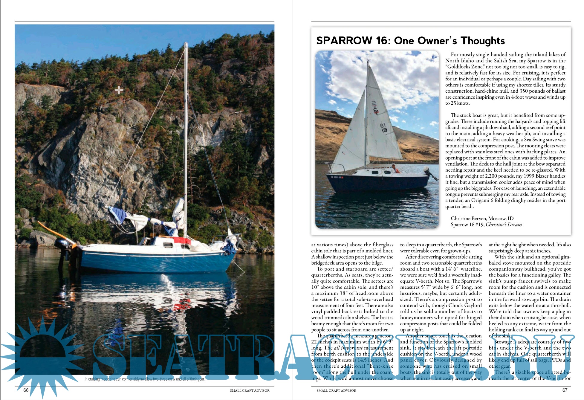 Description: Small boats, big adventure! The only magazine focused on small and trailerable sailboats, cruising, and adventure. Each issue features places to sail, how-to and modification articles, a plan study for the boat builder, and a feature-length review of a production sailboat.