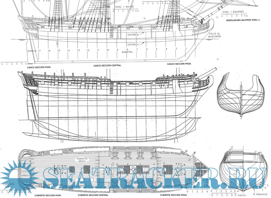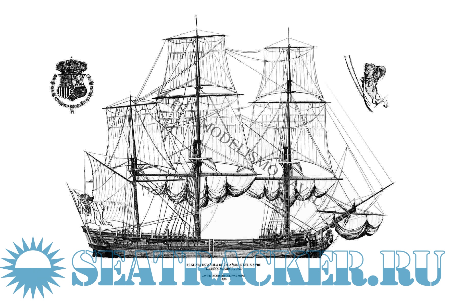 Description: Dibujos de una fragata del siglo XVIII (anexo del libro "Fragata siglo XVIII - Paso a Paso" )