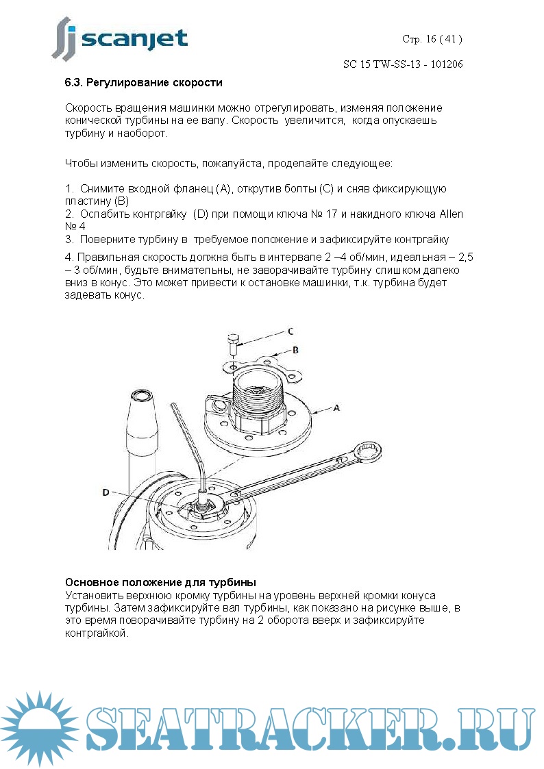 Год выпуска: 2010 Язык: русский Автор: www.scanjet.se Жанр: Инструкция Формат: PDF Качество: Изначально компьютерное (eBook) Количество страниц: 41 Описание: Машинка мойки танки SCANJET, модель SC 15TW предназначена для мойки грузовых и слоп-танков у химовозов/продуктовозов, а также других танков. Размер, конструкция и требования к мойке этих танков являются проектными данными и рассматриваются до установки машинок. Моечную машинку типа SC15 TW можно использовать как стационарную, так и как переносную. Процесс мойки начинается с открытия клапана для моющей среды. Поток воды проходит через турбину внутри машинки, и сопла будут вращаться, создавая картину мойки внутри танка. По окончании процесса мойки клапаны необходимо закрыть. Машинка SC15 TW стандартно поставляется с двумя или четырьмя соплами, размер сопла от Ø6 мм до Ø 10 мм. Данная инструкция была подготовлена для содействия персоналу, который будет эксплуатировать и обслуживать моечные машинки. Ключ для продолжительного срока службы машинки – качественное регулярное обслуживание. Машинка выполняет грубую и грязную работу для вас. Качественный уход за машинками SC15 TW продлит срок их службы.