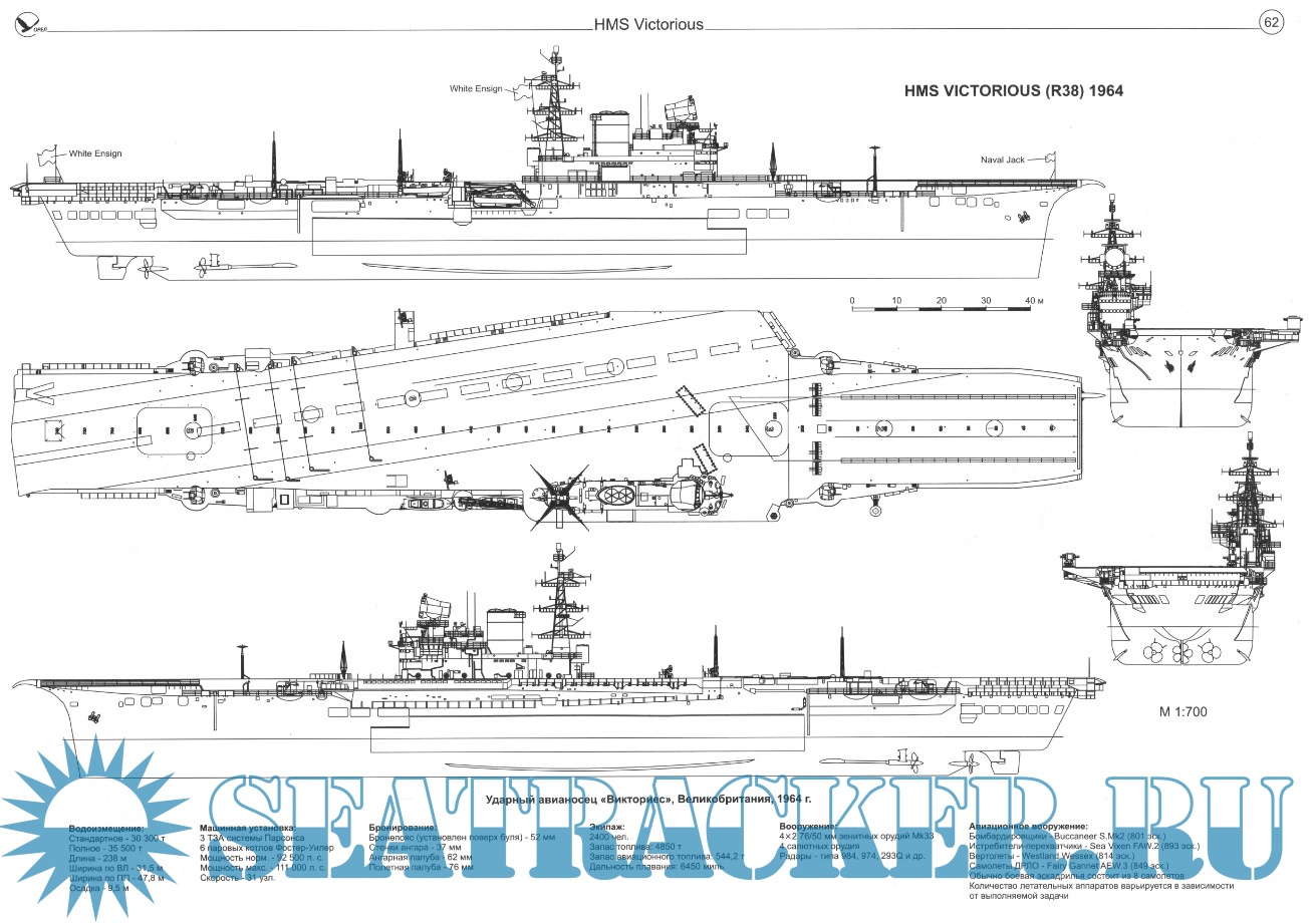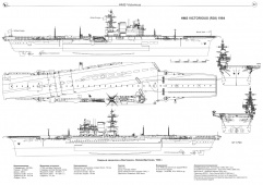 Описание: Стремительное развитие авиации после Второй мировой войны, появление реактивных самолетов, в том числе палубных, скорость посадки которых значительно превышала скорость посадки поршневых машин, а также постоянное увеличение веса самолетов заставило значительно пересмотреть конструкцию корабля-носителя. После вступления в строй «Орескани» в 1950 г., первого в мире авианосца с угловой полетной палубой, одного из тяжелых авианосцев типа «Эссекс», прошедшего основательное переоборудование, проекты по модернизации имеющихся в строю кораблей этого типа стали проводиться и в других странах. Не стала исключением и Великобритания, имеющая в распоряжении второй в мире по численности авианосный флот. Выбор пал на «Викториес», один из тяжелых авианосцев типа «Илластриес», участника знаменитой «охоты на «Бисмарк» и дальневосточной эпопеи британского авианосного флота, действовавшего против милитаристской Японии в составе американских соединений.