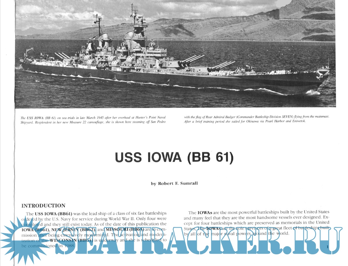 A Pictorial Histories Publication Warship's Data 3 - USS Iowa (BB 61). USS IOWA BB61 by Robert F. Sumrall and line drawings by Thomas F. Walkowiak contains 54 pages, 94 photos, profile line drawings, and a full color center spread.Screenshots