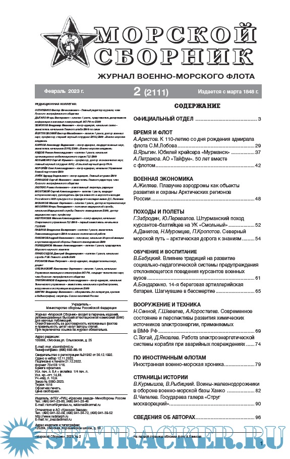 Морской сборник январь 2023 (2110) - Остапенко В.В. (Главный редактор) [2023, PDF]
