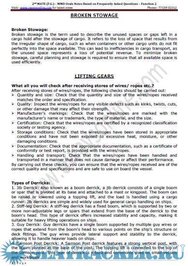 2nd Mate F.G. MMD, India Orals Exams Notes Based on Frequently Asked Questions: Function 2