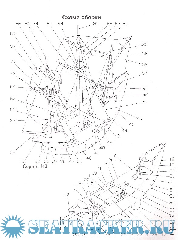 12 листов цветных выкроек и инструкций для создания бумажной модели парусника Виллема БаренцаСкриншоты