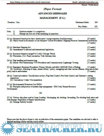 Question Paper Set for Advanced Ship Management (ASM) Mercantile Marine Department (MMD), India…