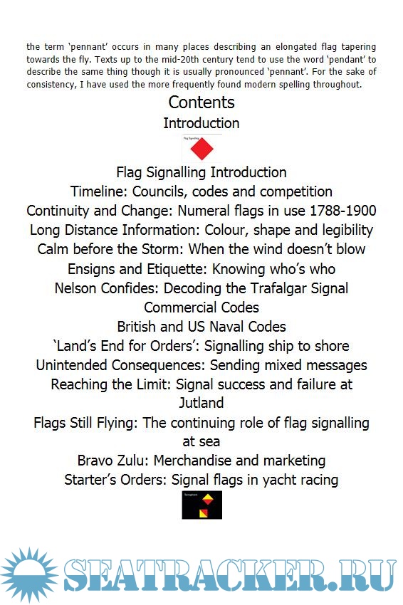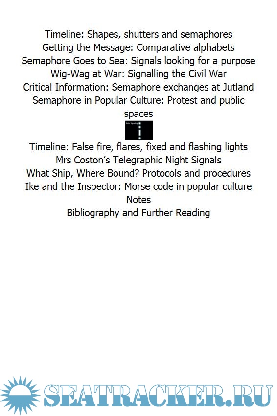 The three sections, Flag Signalling, Semaphore, and Light Signalling each trace the development of the respective methods in meeting the needs of commanders for secure and unambiguous communication with their fleets. Though inextricably linked to naval tactics and fleet manoeuvres, the history of signalling at sea also reflects the exponential growth in global maritime trade in the nineteenth century when dozens of competing systems vied for the attention of ship owners and led to a huge proliferation of codes.
