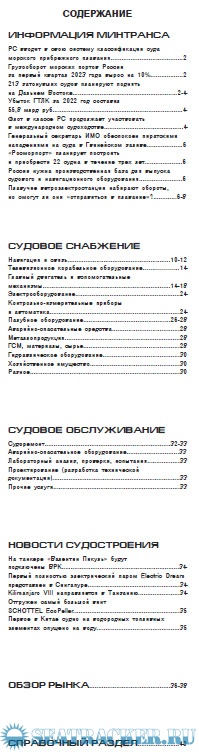 В журнале представлен весь спектр судового оборудования, комплектующих, запчастей, снабжения и материалов (с указанием контактных данных фирм производителей и поставщиков).
