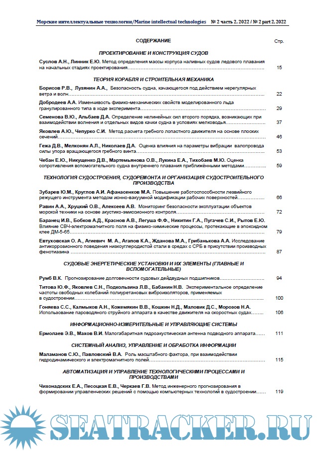 Морские интеллектуальные технологии 2022 № 2 Tом 2