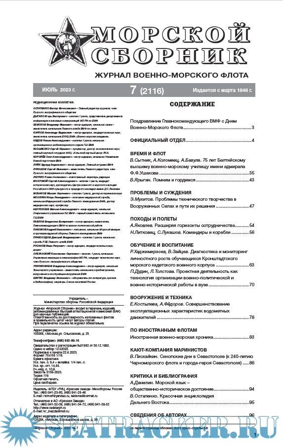 Морской сборник июнь 2023 (2115) - Остапенко В.В. (Главный редактор) [2023, PDF]
