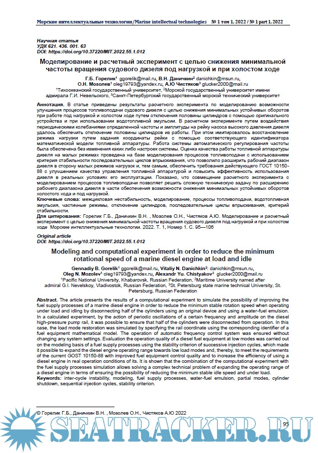 Морские интеллектуальные технологии 2022 № 1 Tом 1