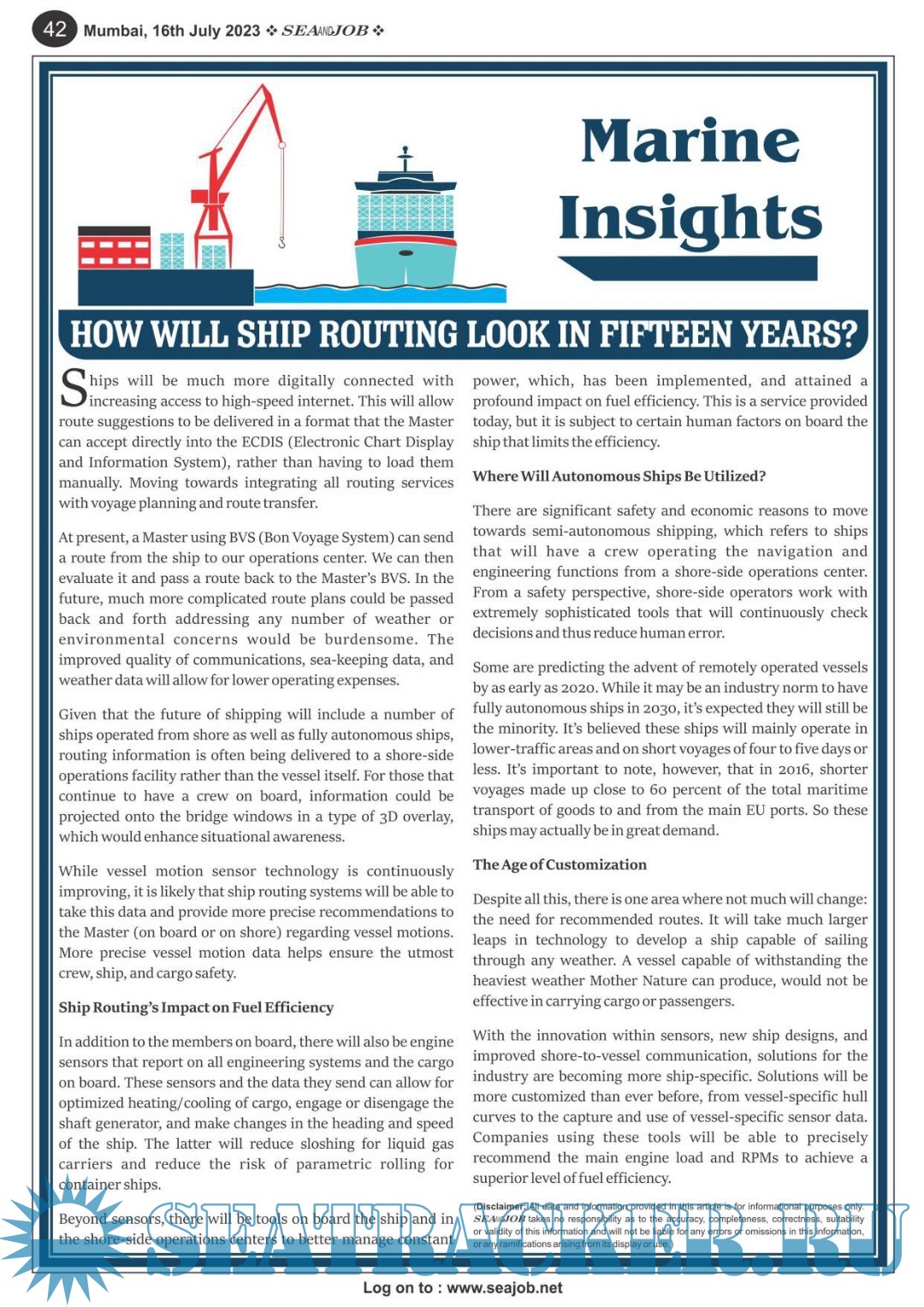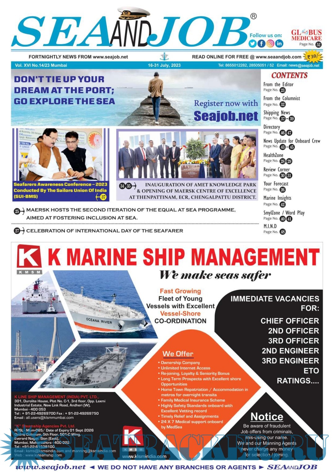Description: The Sea and Job magazine launched in May 2007, was the second venture of Sea Line Group succeeding 'seajob.net' bringing the much renowned essence to the Group, the Sea and Job Magazine quickly gained popularity, becoming the No. 1 Shipping Magazine that came to be widely circulated all over India. Sea and Job over the years has evolved as the most trusted, ethical, objective and read maritime publication that possesses a large database of subscribers from various verticals in the industry.The magazine provides informative and interesting articles covering not just the shipping world but also the world outside it.Sea and Job is also a medium for the shipping/ manning companies to advertise marine jobs and also to promote their organization by publicizing internal activities like seminars, sports events and parties.Some notable endeavors of the magazine include the Know Your Recruiter Column, the Sailing Episodes Column and the Marine Insights section. The consistent efforts and the dedication to provide extraordinary services to the industry has resulted in the magnifying popularity and patronage of Sea and Job.