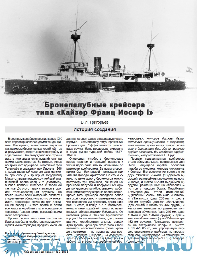 В качестве дополнительного материала номера предлагается статья об австро‑венгерских бронепалубных крейсерах типа «Кайзер Франц ИосифI».