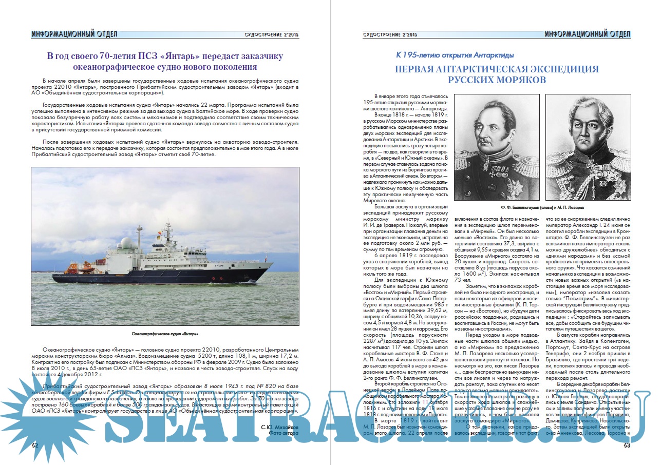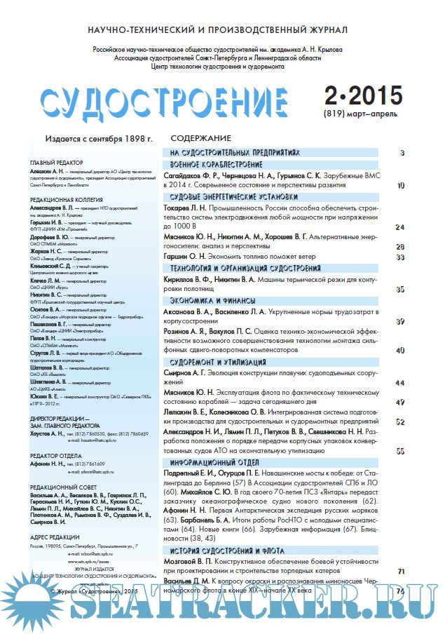 Описание: В журнале публикуются статьи ученых и специалистов на темы, связанные с проектированием, постройкой, ремонтом, модернизацией и утилизацией военных кораблей, гражданских судов. Регулярно выходят в свет работы, посвященные организации и технологии судостроительного производства, проектированию верфей и доков, новым судостроительным материалам. Большое внимание уделяется вопросам судовой энергетики и новым разработкам в области морской техники.