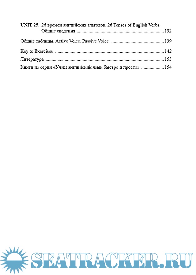 Год выпуска: 2023 Язык: Русский, Английский Автор: Т. Ю. Серегина, О. А. Асташкина Жанр: Учебное пособие Издательство: Флинта Формат: PDF Качество: Изначально компьютерное (eBook) Количество страниц: 156 Описание: Книга «Времена глаголов. Действительный залог» состоит из 32 параграфов, каждый из которых представляет определенный раздел грамматики. В этом учебном пособии вы познакомитесь с временами глаголов, действительным залогом (Active Voice). В пособии представлены параграфы для поэтапного изучения неправильных глаголов; статичные глаголы (глаголы состояния); объясняется, как сказать о будущем по степени вероятности совершения действия; вопросительные местоимения; конструкции «have been to», «have gone to»; «have been in»; таблицы, объясняющие различия применения многих одинаково звучащих на русском языке слов и многое другое. В уроках доступно объясняются грамматические правила с использованием таблиц. В каждом разделе даны упражнения с заданиями и примерами по их выполнению.