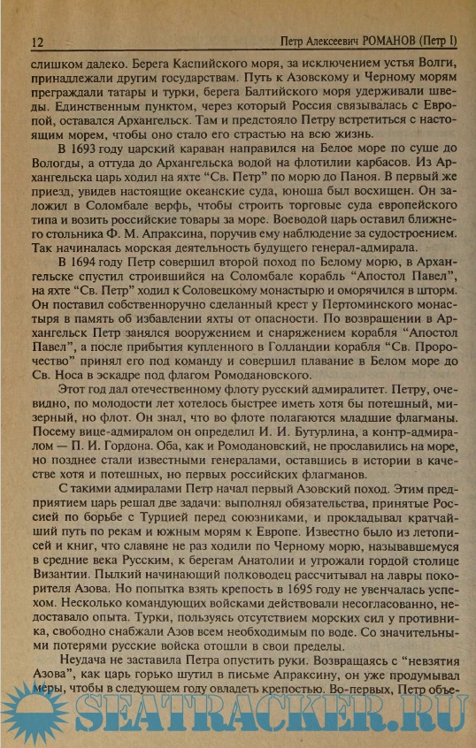 Описание: В настоящей книге автор сделал попытку рассмотреть биографии выдающихся российских адмиралов и флотоводцев, отличившихся в боях. В число избранных попали как русские по происхождению моряки, так и прибывшие в Россию из-за границы: Ф.Лефорт, Ф.Головин, Ф.Апраксин, Н.Синявин, О.Де-Рибас, Ф.Ушаков, М.Лазарев, В.Корнилов, П.Нахимов, С.Макаров... и, конечно, основатель российского флота Петр Великий.