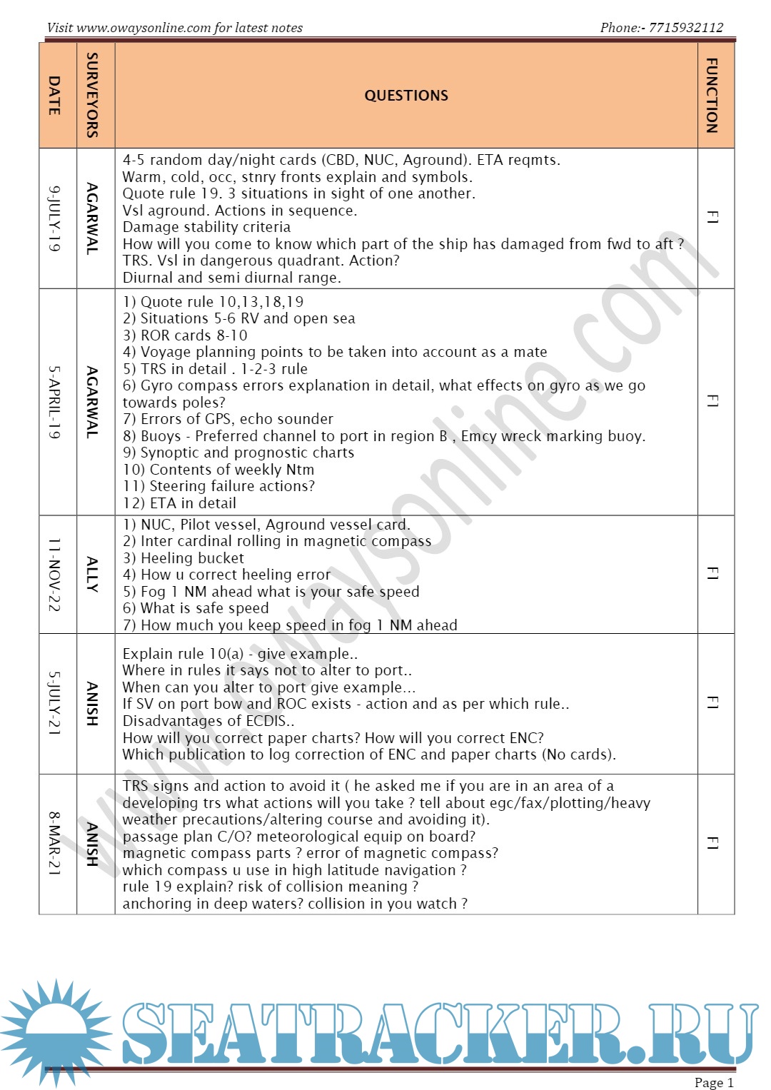 Description: Orals Question Bank for Chief Mate F.G. Mercantile Marine Department (MMD), India Examinations.