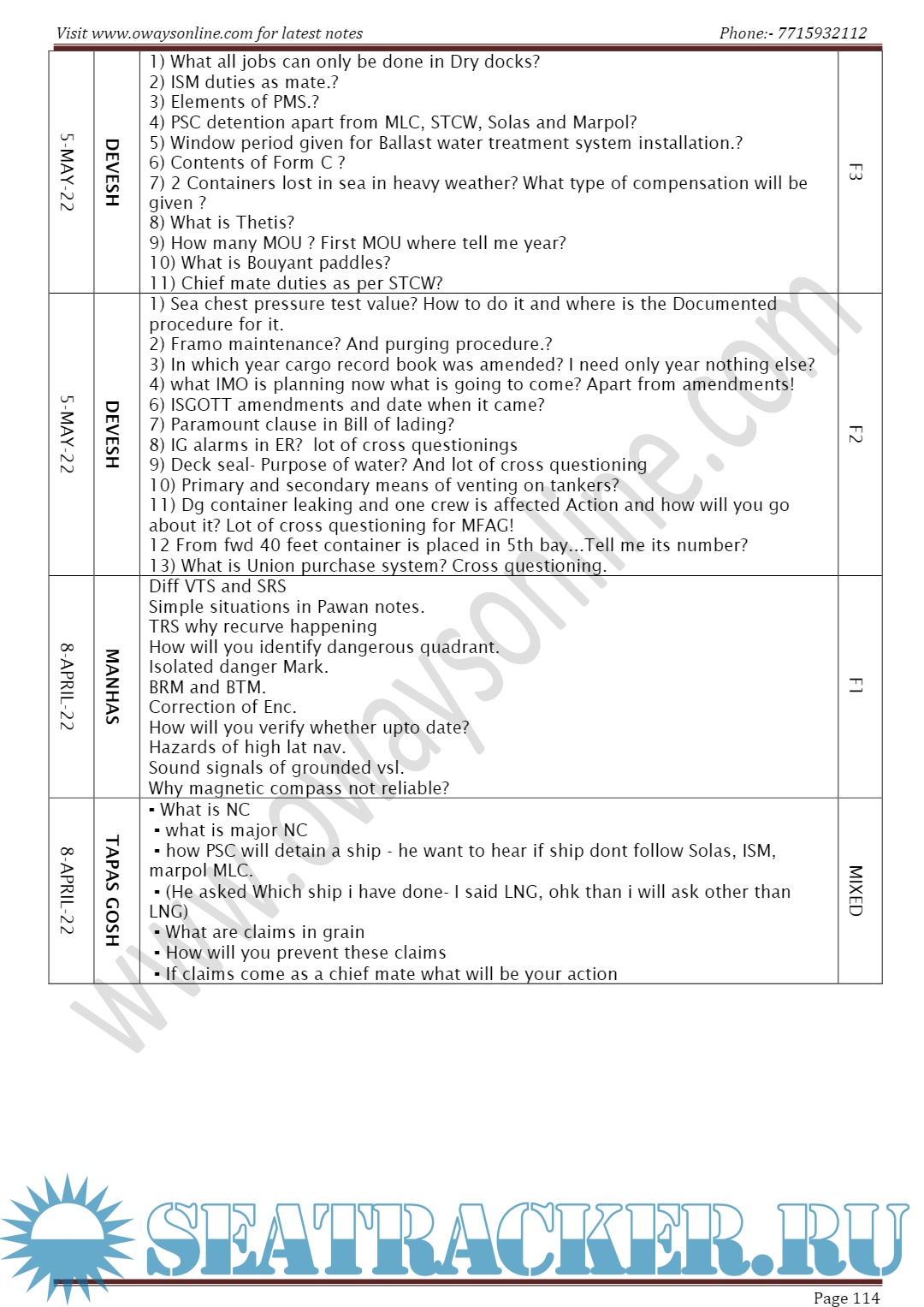 Orals Question Bank (July 2023) for Chief Mate F.G. Mercantile Marine Department (MMD), India Examinations