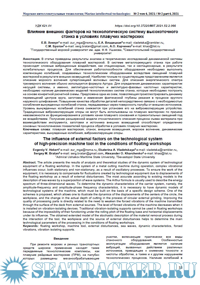 Морские интеллектуальные технологии 2021 № 2 Tом 4