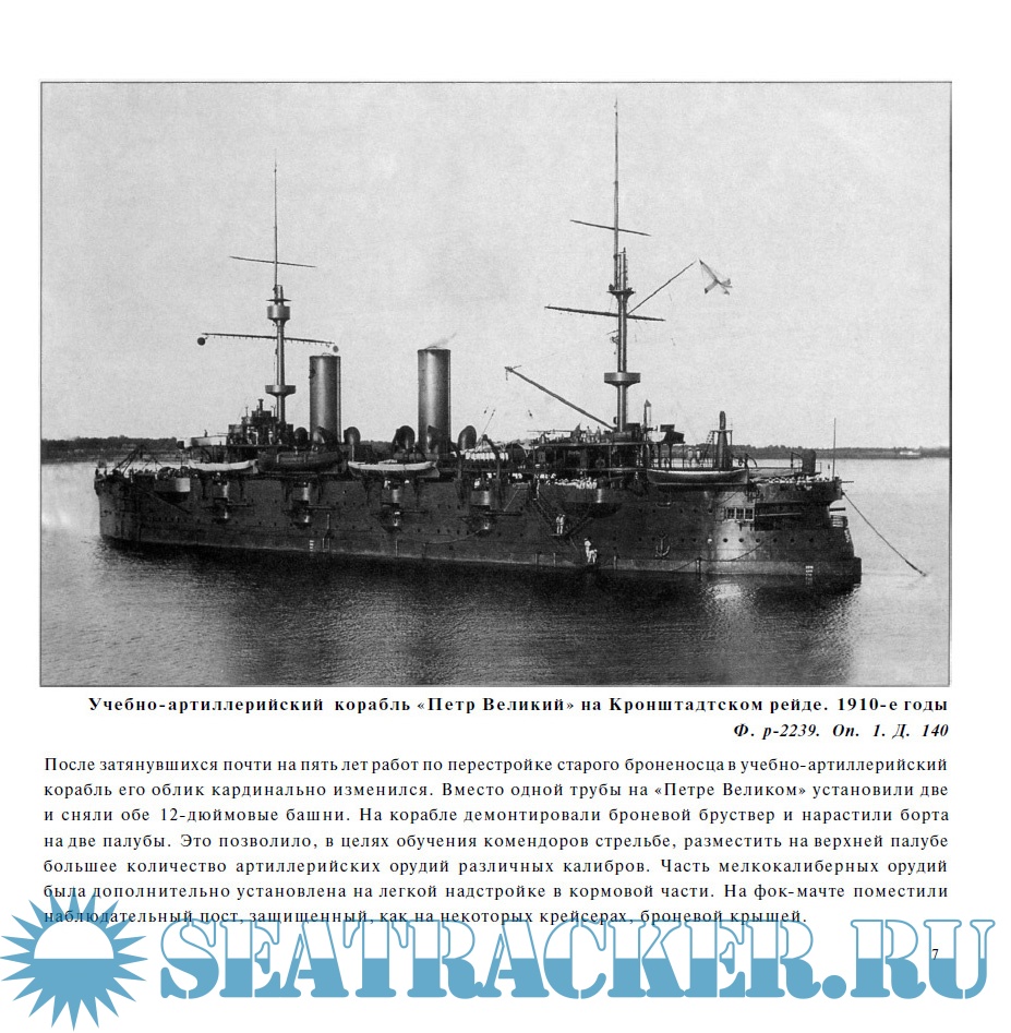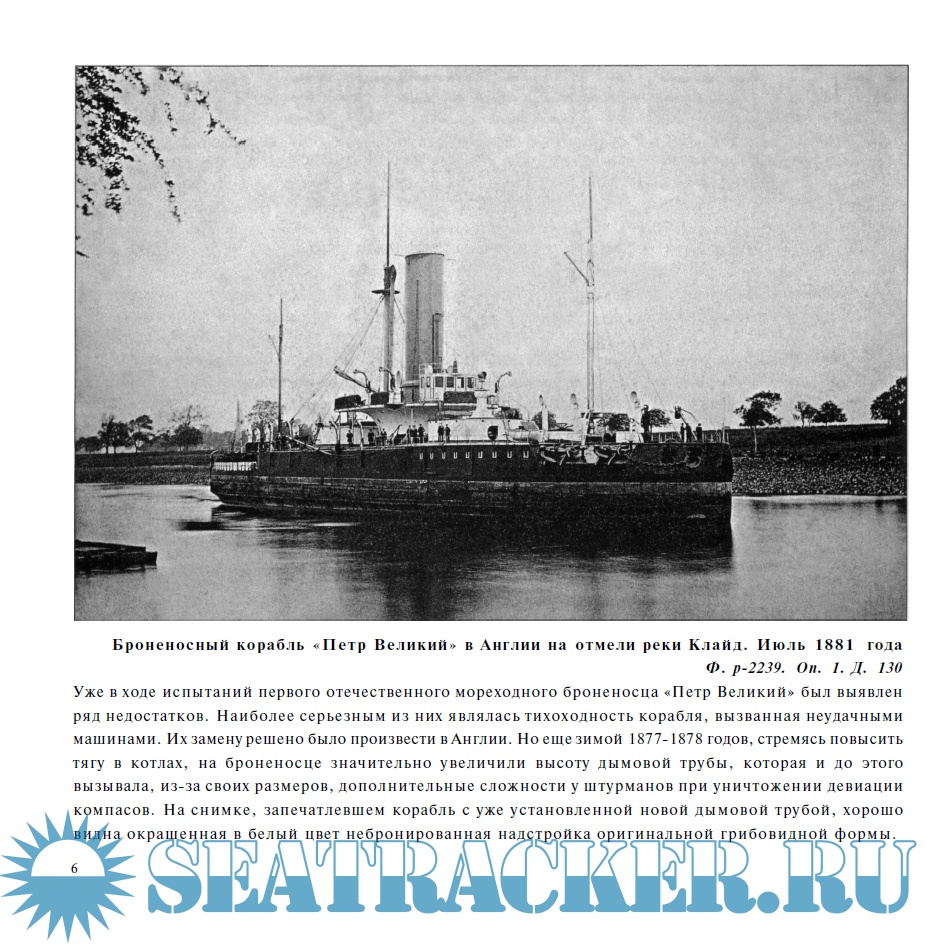 Год выпуска: 2004 Язык: русский Автор: Автор-составитель К. П. Губер Жанр: История Издательство: РГАВМФ Формат: PDF Качество: Изначально компьютерное (eBook) Количество страниц: 44 Описание: В публикации представлены фотографии и фотооткрытки второй половины XIX – начала XX века с изображениями балтийских броненосных кораблей, эскадренных броненосцев и линейных кораблей додредноутного типа, хранящиеся в фондах Российского государственного архива военно-морского флота (РГАВМФ). Фотодокументы, помещенные в иллюстративной части альбома, расположены в порядке возрастания номеров архивных дел, заголовки которых легли в основу подрисуночных подписей. Незначительная часть иллюстраций представляет фрагменты архивных документов, что отдельно не оговаривается. В публикации приведены шифры, под которыми дела хранятся в фондах РГАВМФ. На второй и третьей страницах обложки представлены краткие сведения о службе балтийских броненосцев начиная с даты зачисления в списки флота и заканчивая датой передачи корабля для разборки на металл.