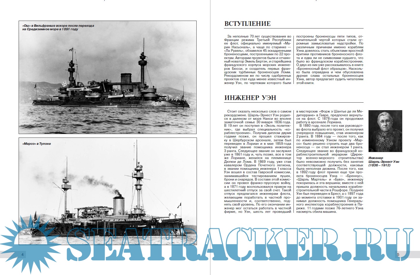 Описание: В конце XIX столетия французский флот поражал большим количеством кораблей, построенных по совершенно различным проектам. Но чаще всего среди них встречались созданные инженером Шарлем Эрнестом Уэном, главным конструктором броненосцев флота Третьей республики. Именно на его кораблях проходили апробацию многочисленные технические новинки той эпохи: вязкая стальная и сталеникелевая броня, бездымный порох, паровые машины тройного расширения. Поражал и внешний вид этих кораблей. За развитые надстройки их даже окрестили "Плавучими замками". И хотя этим броненосцам не пришлось участвовать в морских сражениях, их необычная архитектура и оригинальная конструкция без сомнения не оставят равнодушными любителей истории флота.
