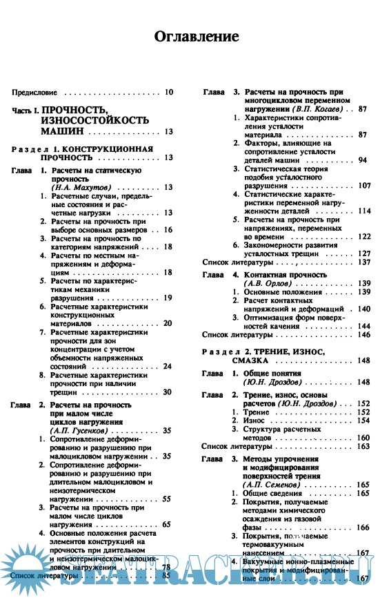 Изложены трение, износ и смазка: сила трения, интенсивность изнашивания, гидродинамическая и контактно-гидродинамическая теории смазки, материалы трущихся поверхностей, их упрочнение и покрытия, смазочные материалы. Приведены направления развития теории, расчета и конструирования деталей и узлов машин общемашиностроительного применения всех основных видов: соединений, передач, валов и осей, подшипников, упругих элементов, муфт, точность, кинематика, материалы и упрочнения, виды отказов, динамика, расчеты на прочность, вероятность безотказной работы, износостойкость.