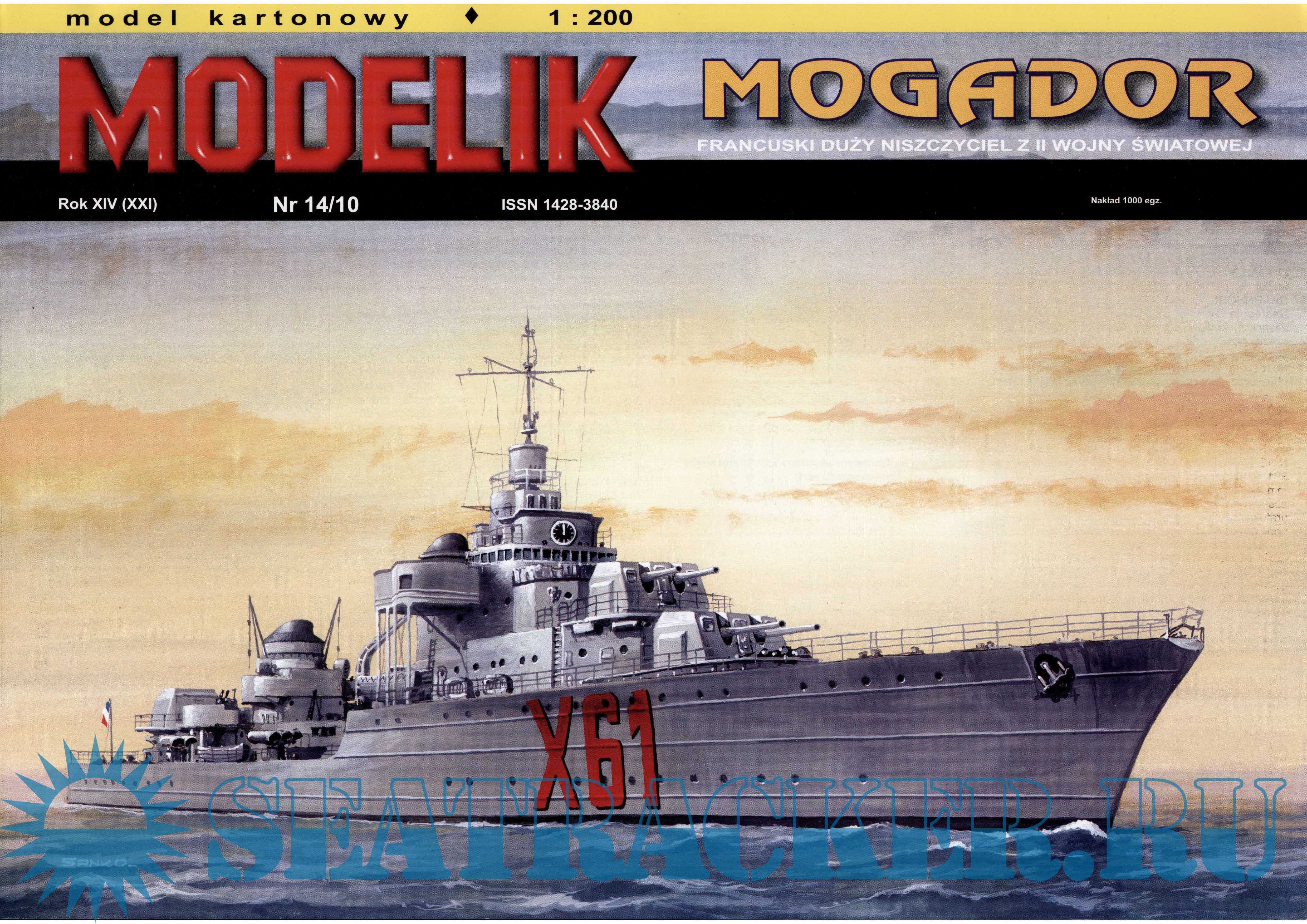 14 листов цветных выкроек и инструкций для изготовления бумажной модели французского эскадренного миноносца ''Mogador'' в масштабе 1:200