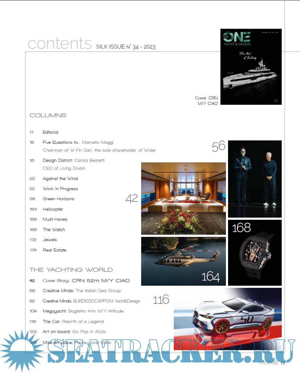 Description: It’s a dazzling jewel that stands out among magazines dedicated to large yachts. The magazine, printed in English only, is intended for Gigayachts clientele. It is distributed worldwide and is present at the most exclusive international Nautical Fairs, from Dubai to Miami and Monte Carlo. Published quarterly.