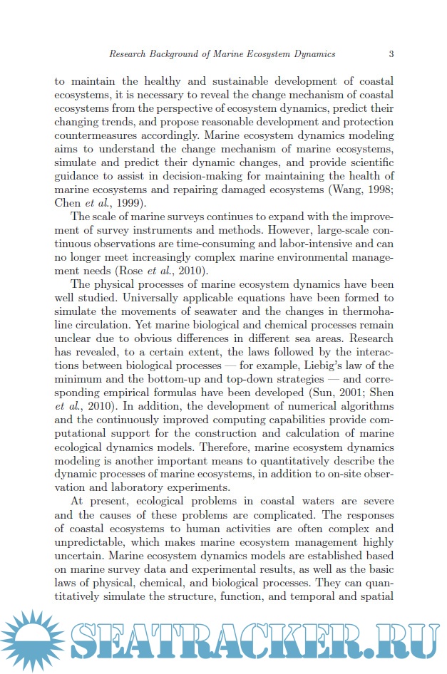 Year: 2023 Language: english Author: Honghua Shi, Chengcheng Shen, Yongzhi Liu Genre: Technical book Publisher: World Scientific Pub Co Inc Format: PDF Quality: eBook Pages count: 362 Description: This book presents the fundamental theories, methodologies and case studies of marine ecosystem modeling with a special focus on marine ecological dynamics that could provide scientists and researchers with a stabile and reliabile technical framework to study marine life and their developments. This book also clarifies the research objective and model classification methods of marine ecosystem dynamics research and analyzes the key marine ecological processes that affect modeling. The technical framework for improving the performance of modeling is also proposed, and the latest progress in research, as well as existing difficulties and challenges in end-to-end dynamics models are reviewed and analyzed. A dimensionality reduction theorem is established and derived for analyzing the stability of the solutions of a class of self-conserving marine ecosystem dynamic models. Also included in this work are several new types of marine ecosystem dynamics models constructed by modern computing methods - including artificial neural networks, cellular automata, and statistical dynamics - and case studies. This book is a suitable reference for professional and technical personnel, managers and graduate students specializing in the evolution mechanism, simulation, predication and regulation of marine ecosystems.