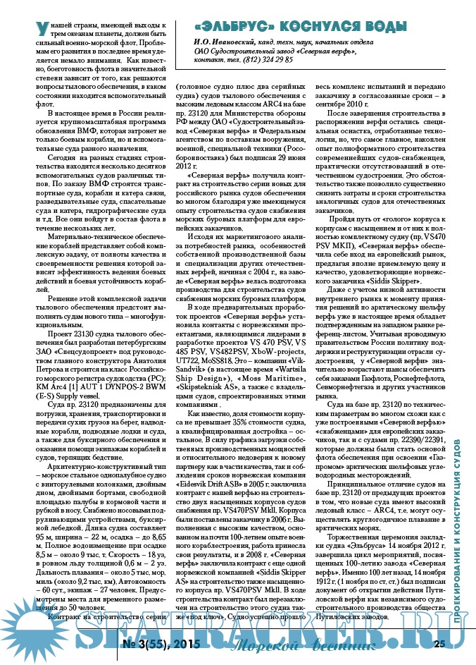 Описание: Информационные, аналитические, научно-технические и исторические статьи по морской технике и технологиям, экологической безопасности судостроения и судоходства, освоению океана и шельфа, безопасности мореплавания, истории флота и мореплаваний, морскому бизнесу и праву.