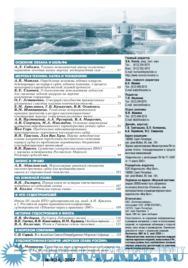 Описание: Информационные, аналитические, научно-технические и исторические статьи по морской технике и технологиям, экологической безопасности судостроения и судоходства, освоению океана и шельфа, безопасности мореплавания, истории флота и мореплаваний, морскому бизнесу и праву.