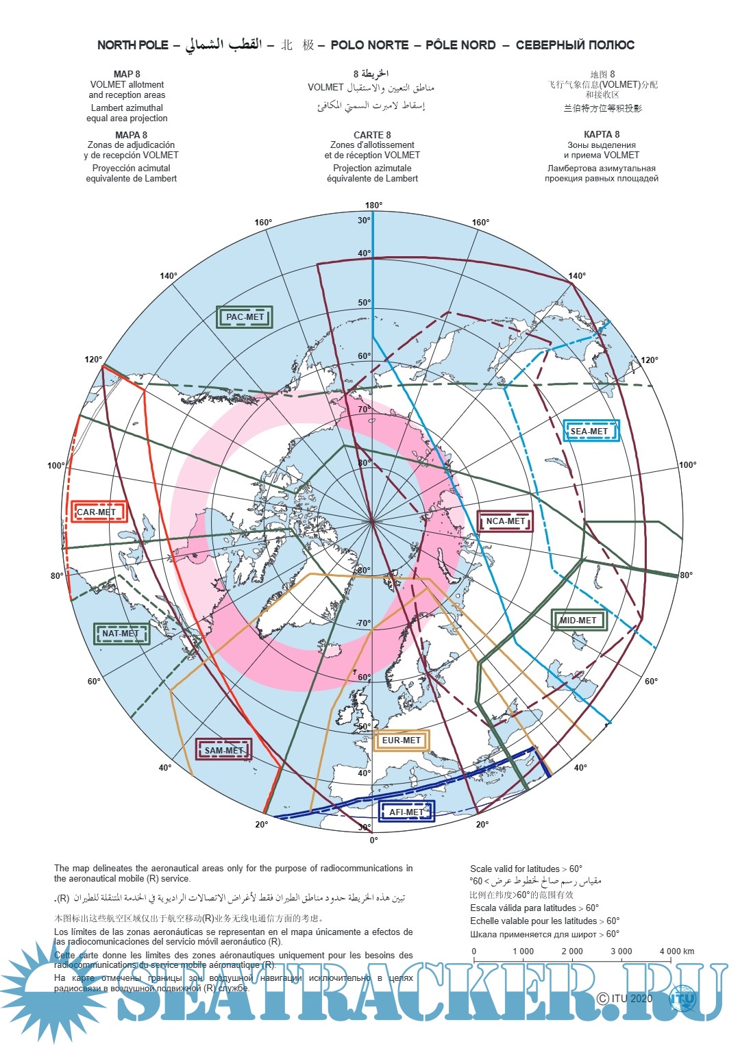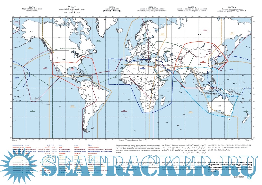 1. Зоны основных всемирных воздушных трасс. 2. Зоны региональных и национальных воздушных трасс. 3. Зоны выделения и приема VOLMET. 4. Северный полюс. 5. Южный полюс. И др.