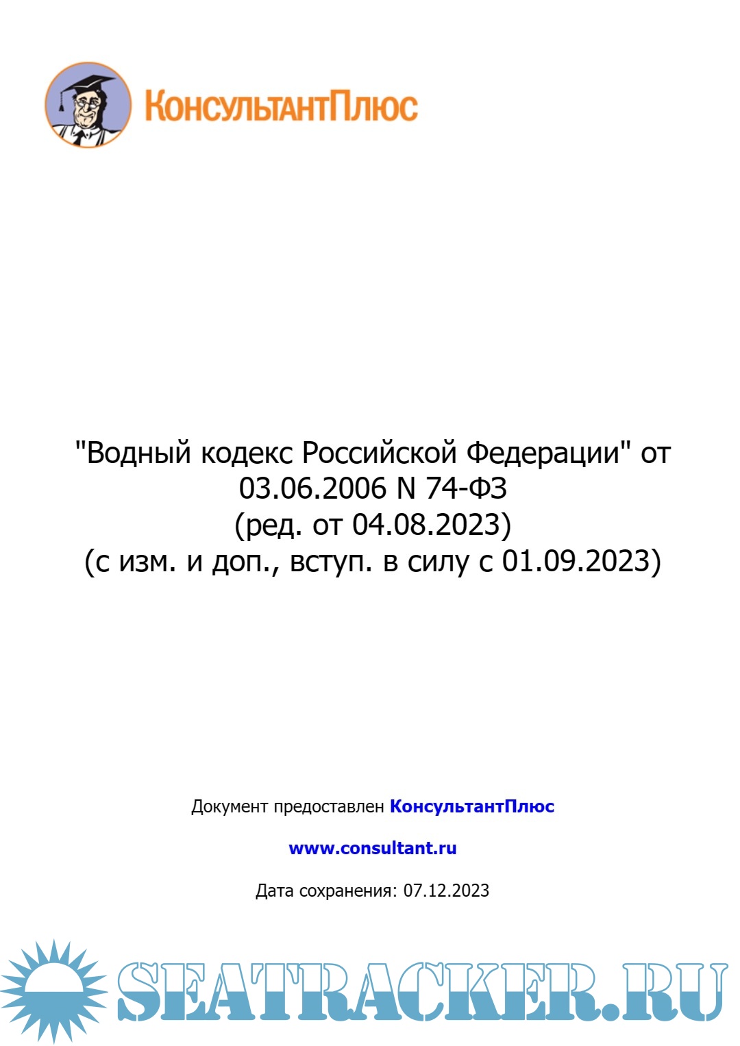 Описание: "Водный кодекс Российской Федерации" от 03.06.2006 N 74-ФЗ (ред. от 04.08.2023) (с изм. и доп., вступ. в силу с 01.09.2023).
