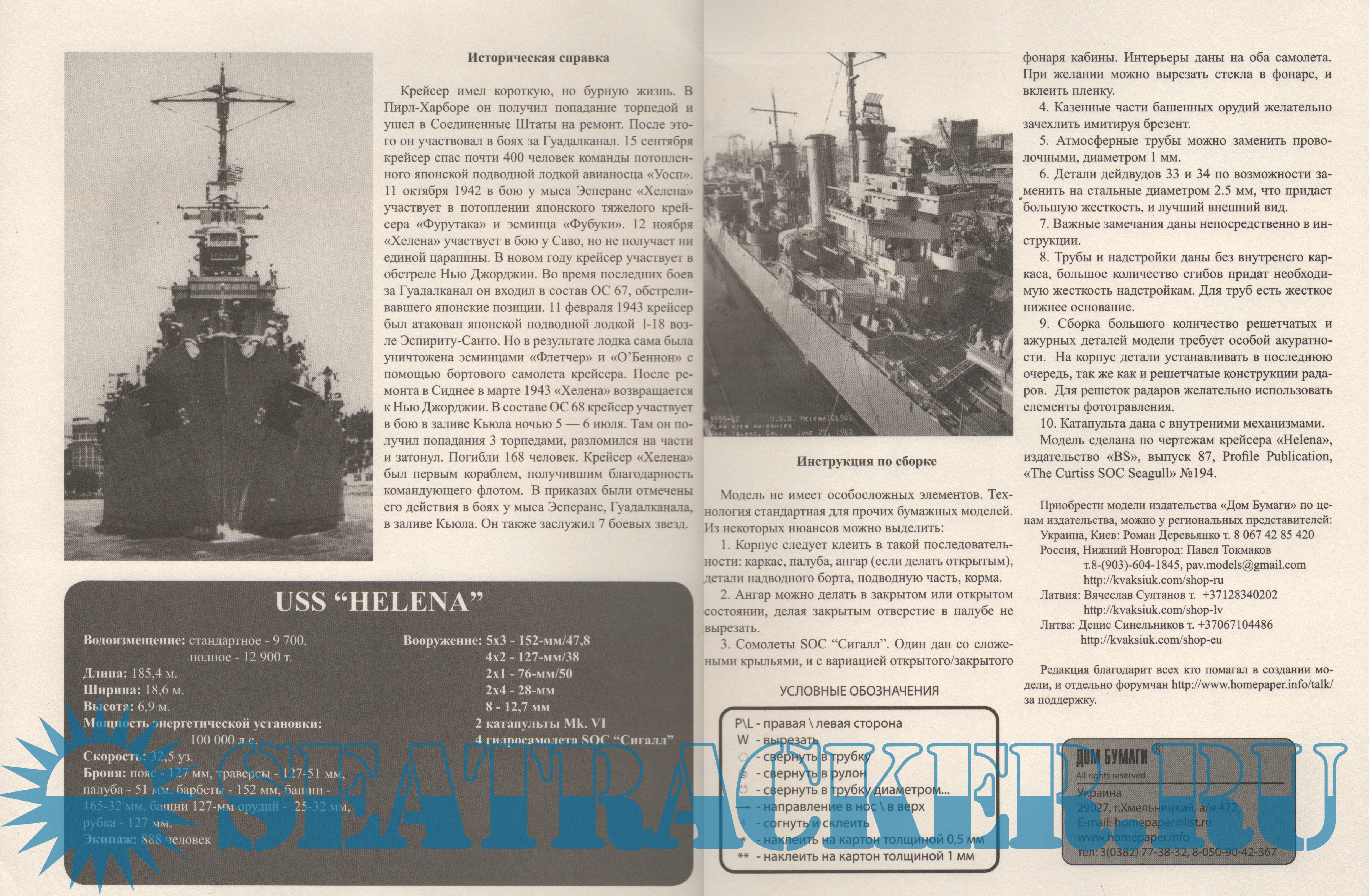 51 лист цветных выкроек и описаний для создания бумажной модели крейсера USS Helena (США) в масштабе 1:200