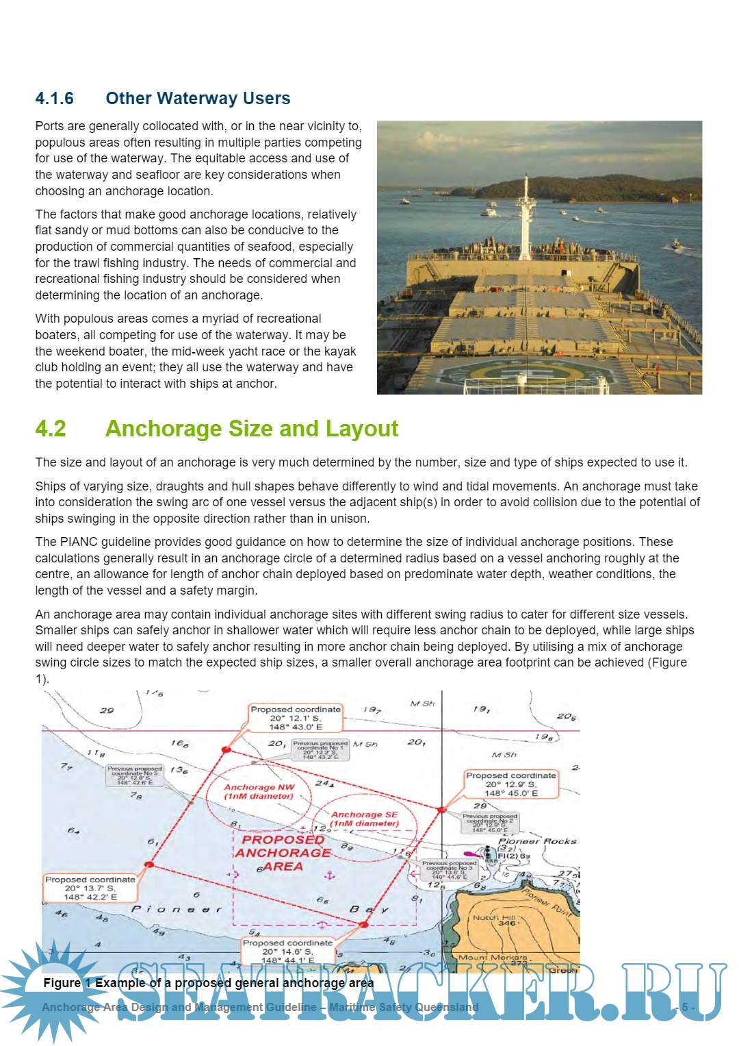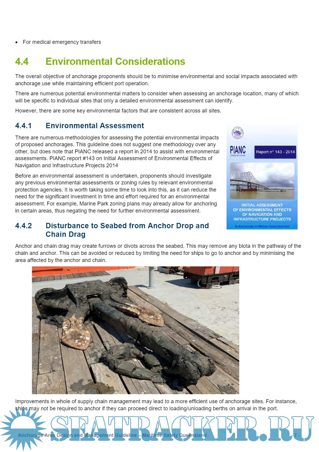 Year: 2019 Language: English Author: Maritime Safety Queensland Format: PDF Quality: eBook Pages count: 15 Description: The purpose of this guideline is to prompt entities involved with the establishment and on-going management of anchorages to consider the range of operational, environmental and social impacts posed by anchorages and to provide strategic guidance for their sustainable management.