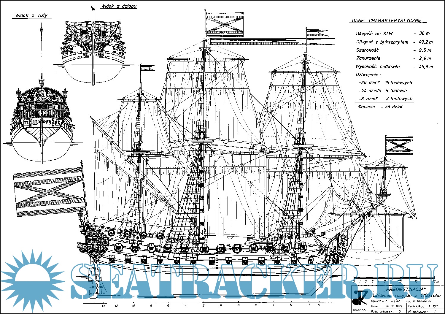14 листов чертежей линейного парусного корабля "Гото Предестинация" (Россия)