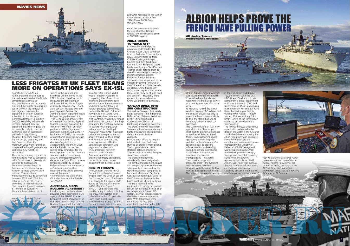 Description: Warships IFR puts the spotlight on the latest developments in the world’s navies. It covers current defence issues and has comments by leading analysts. The magazine regularly includes features on the Royal Navy and the US Navy in addition to incorporating news and features on all other navies across the globe. Warships IFR frequently carries in-depth articles on naval heritage.WARSHIPS International Fleet Review is published 12 times a year by Tandy Media Ltd who also publish Shipping Today & Yesterday (which provides news and features from the world of merchant shipping).