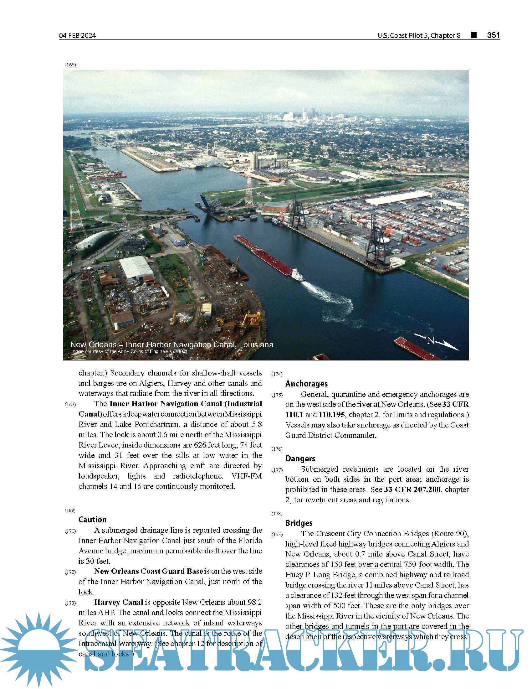 Year: 2024 Language: English Author: NOAA Genre: Documentation Edition: 2024 (52nd) Edition Format: PDF Quality: eBook Pages count: 612 Description: The United States Coast Pilot® consists of a series of nautical books that cover a variety of information important to navigators of coastal and intracoastal waters and the Great Lakes. Issued in ten volumes, they contain supplemental information that is difficult to portray on a nautical chart. Topics in the Coast Pilot include channel descriptions, anchorages, bridge and cable clearances, currents, tide and water levels, prominent features, pilotage, towage, weather, ice conditions, wharf descriptions, dangers, routes, traffic separation schemes, small-craft facilities, and Federal regulations applicable to navigation. This edition cancels the 51st Edition and includes all previously published corrections.