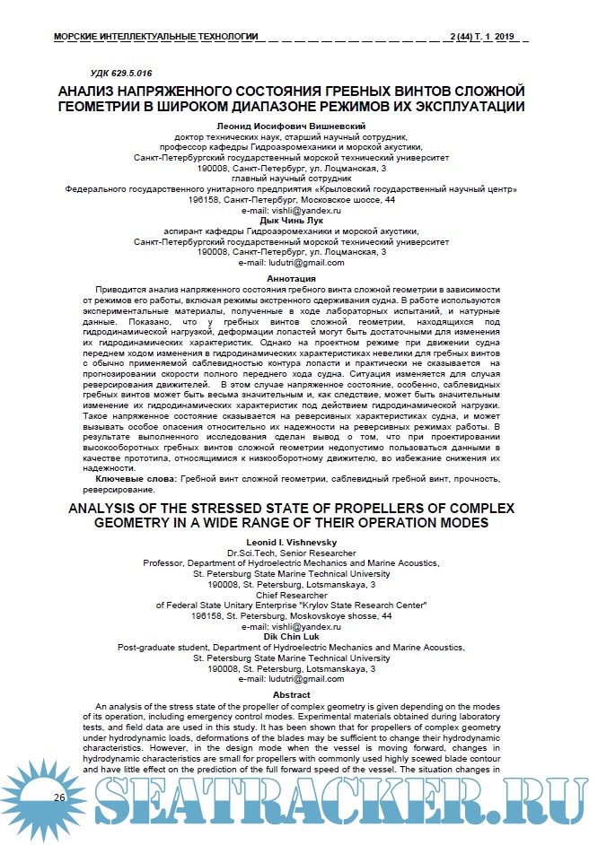 Морские интеллектуальные технологии 2019 № 2 часть 1
