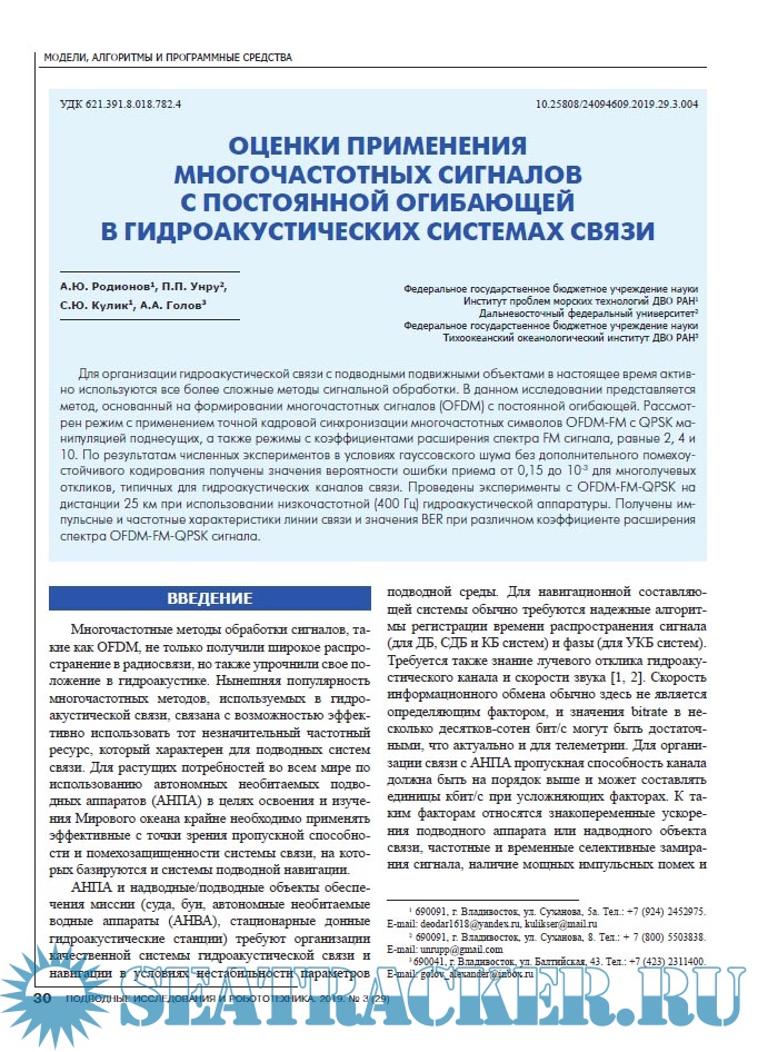 Описание: Научно-технический журнал «Подводные исследования и робототехника» посвящен проблемам исследования и освоения Мирового океана и относится к области знаний, лежащей на стыке наук:- теоретической и прикладной механики, навигации и управления движением, динамики управляемых систем и процессов,- робототехники, мехатроники, автоматизированного конструирования технических устройств, информатики и вычислительной техники,- теоретической и прикладной океанографии, физики океана, гидроакустики, морской геологии, экологии морских акваторий.Цель журнала – систематизировать и объективно отражать все наиболее значимые научно-технические и практические достижения и результаты исследований по освоению подводного пространства и морского дна, способствовать развитию новых идей, средств и методов подводных исследований и робототехники, консолидировать усилия научных и деловых кругов, потенциальных потребителей новейших достижений в сфере подводных технологий.Журнал «Подводные исследования и робототехника» публикует научно-технические статьи, проблемные, обзорные, дискуссионные материалы по всем направлениям, относящимся к методам и техническим средствам исследования и освоения океана, включая подводные аппараты и роботы, акустические, гидрологические, геофизические средства и методы исследования физических полей океана.Авторами публикаций журнала являются авторитетные ученые, ведущие специалисты и молодые исследователи из научных организаций и вузов Москвы и Подмосковья, Санкт-Петербурга, Зарубежья, Дальнего Востока, Урала, Сибири, и других регионов России. Для научного рецензирования и редактирования публикуемых статей привлекаются авторитетные специалисты в соответствующих областях знаний.Читательская аудитория - широкий круг ученых и специалистов, работающих в области исследования морских глубин, деловые круги и потенциальные потребители научно-технических разработок и инновационных проектов, молодые ученые, аспиранты и студенты, специализирующаяся в указанной области.