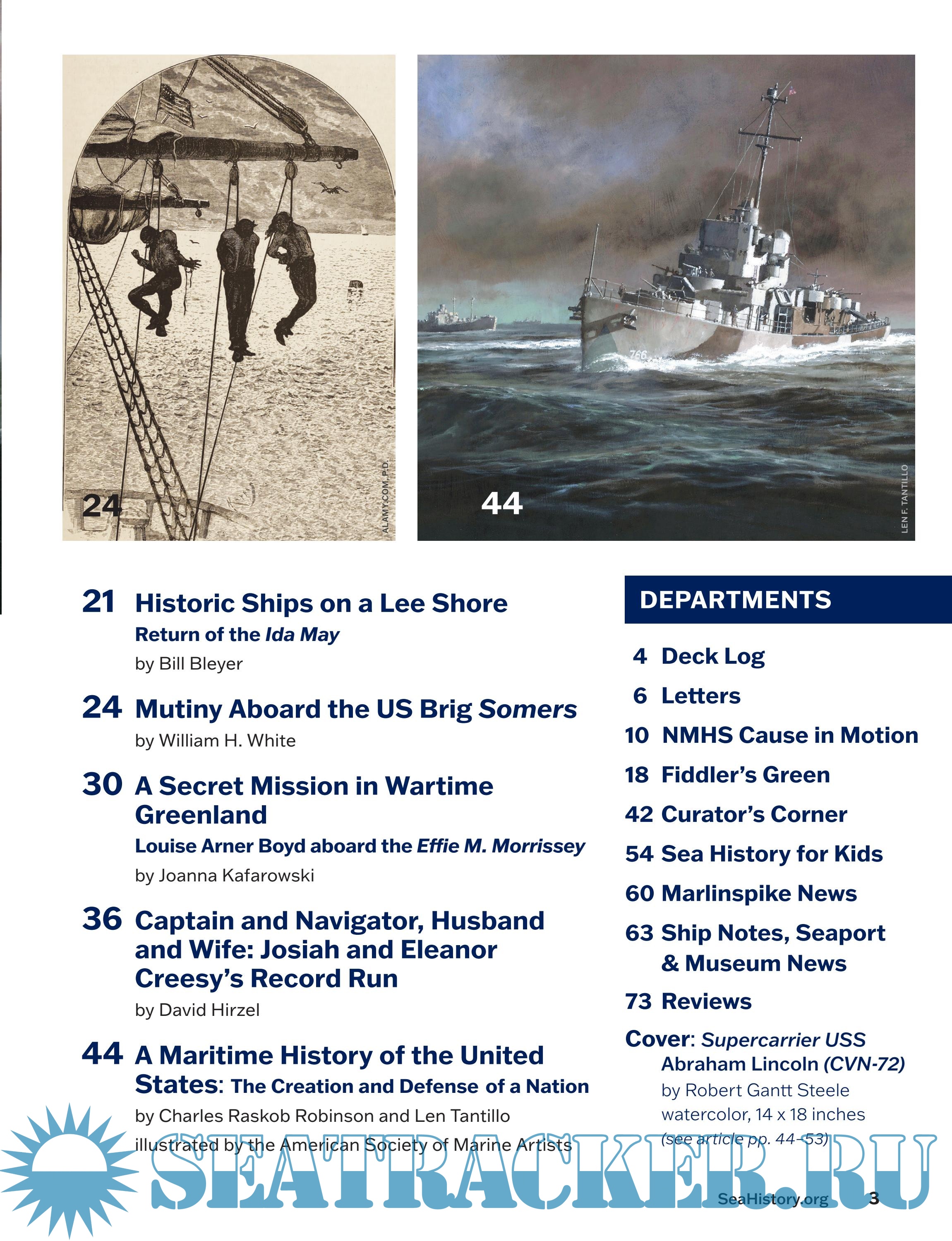 Sea History Magazine - the Art, Literature, Adventure, Lore and Learning of the Sea is published quarterly by the National Maritime Historical Society. Our seafaring history comes alive in the pages of Sea History, the National Maritime Historical Society’s quarterly magazine. The pre-eminent journal of advocacy and education in our field, Sea History covers the world of maritime museums, sail training, key events and people in our maritime past, and the stories of everyday sailors past and present, and marine archaeology, with a national focus and an international scope, as well as Others regular features.