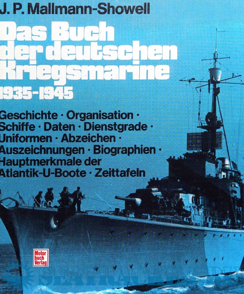 Year: 1995 Language: German Author: Jak P. Mallmann Showell Genre: History Publisher: Motorbuch Format: PDF Quality: Scanned pages Pages count: 256 Description: Das Buch der deutschen Kriegsmarine, 1935-1945 : Geschichte. Organisation. Schiffe. Daten. Dienstgrade. Uniformen. Abzeichen. Auszeichnungen. Biographien. Hauptmerkmale der Atlantik - U - Boote. Zeittafeln
