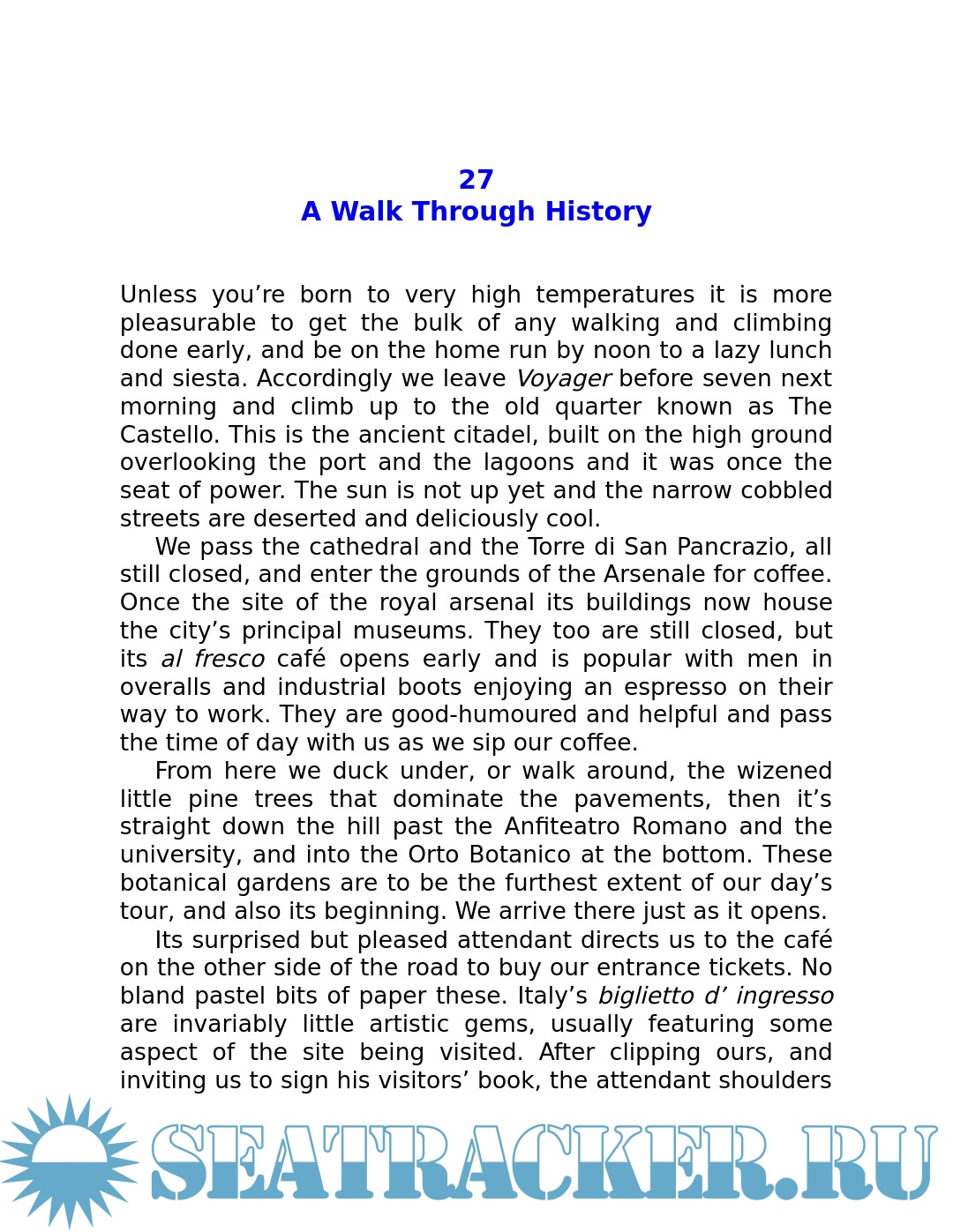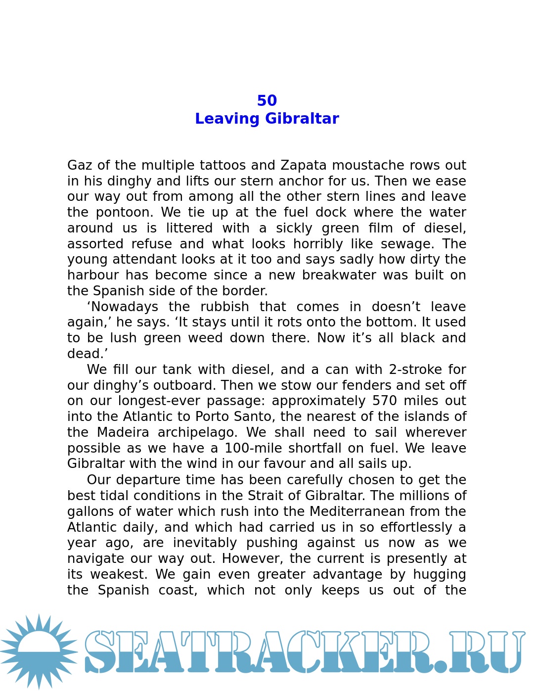ancient harbours and the people they meet, they also develop a fascination with the sea and its wildlife. And, whilst questioning the things we value and the nature of happiness, this book reveals the growing and sometimes amusing inter-dependence of two people alone at sea.