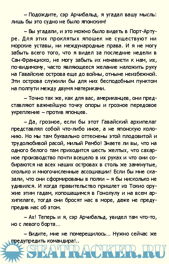 Содержание Глава 1. Японская торпеда Глава 2. Импровизированная лодка Глава 3. В крепости Мидуэй Глава 4. Общая родина Глава 5. Проект инженера Глава 6. Звездный флаг Глава 7. Случайный аэроплан Глава 8. Изменник Глава 9. Утренний отлет Глава 10. Над Тихим океаном Глава 11. На краю вулкана Глава 12. Погоня Глава 13. Один среди ночи Глава 14. Торжественный спуск аэроплана Глава 15. На крейсере "Колорадо" Эпилог